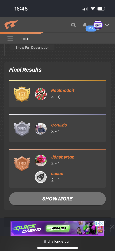 Resultat JK Strikt Champions League april