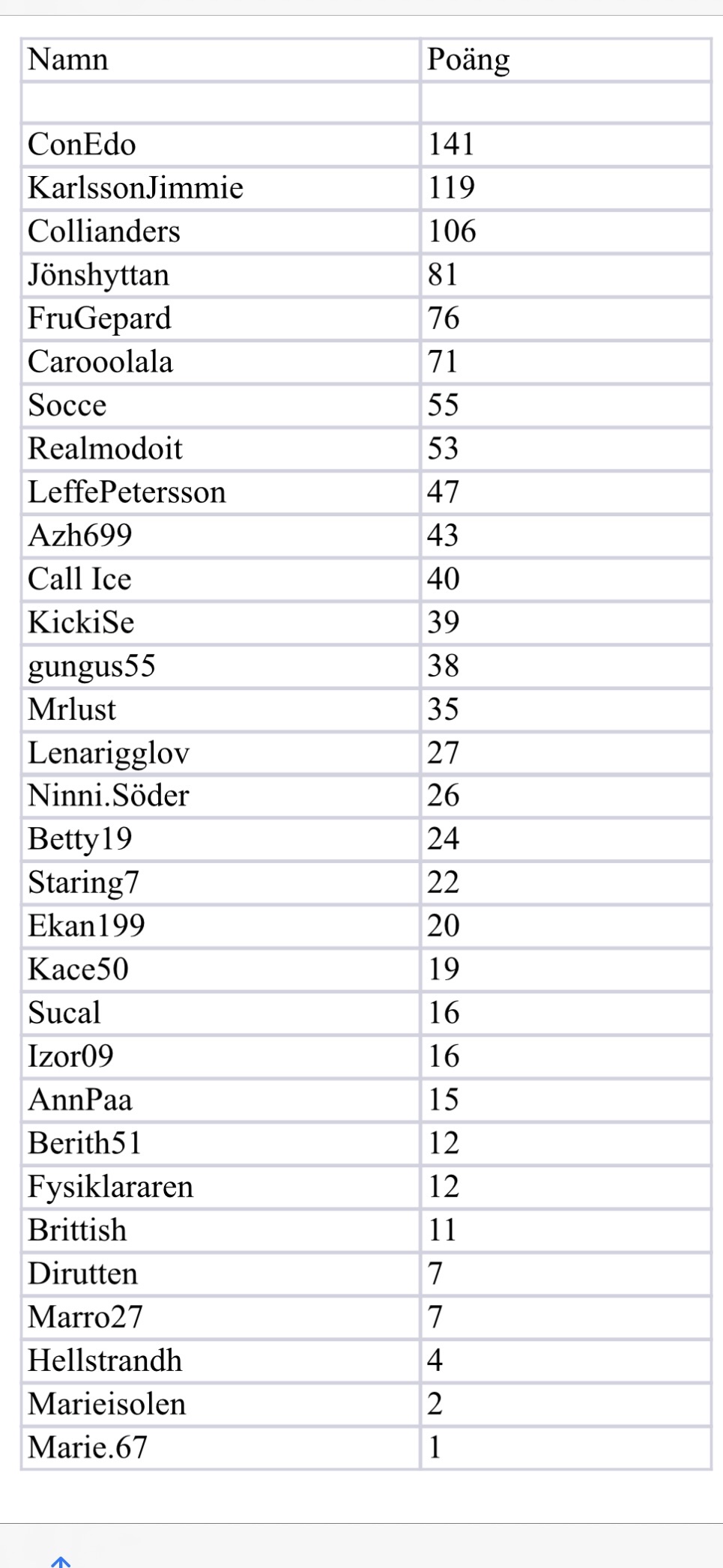 Aktuell ställning i JK Strikt Champions League efter september